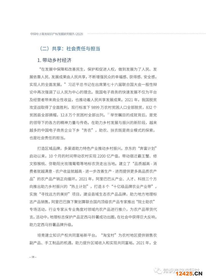 近日,國家知識產權局知識產權發展研究中心發布《中國電子商務知識產權發展研究報告(2021)》,重點對2021年度電商平臺知識產權工作的新特點、新形勢、跨境治理等展開研究。報告顯示,2021年我國電子商務領域知識產權工作實現新突破,電子商務領域知識產權保護水平持續提升。