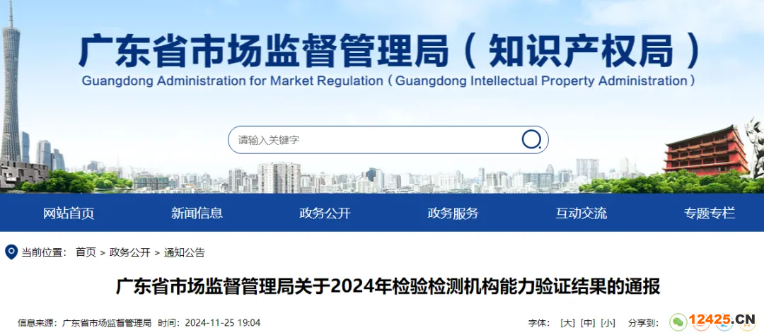 廣東省市場監督管理局關于2024年檢驗檢測機構能力驗證結果的通報