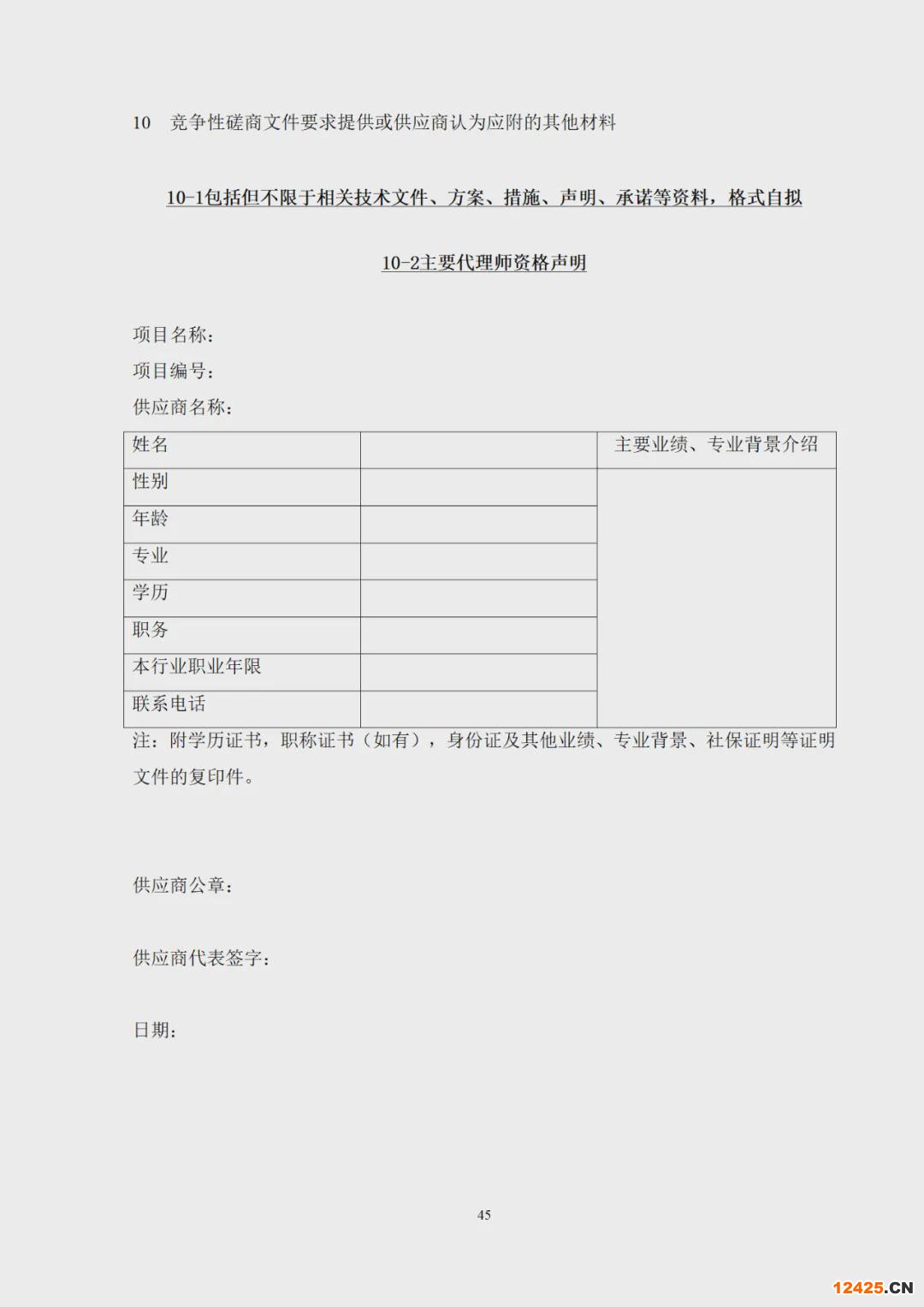 本項目代理費收費標準:詳見競爭性磋商文件;