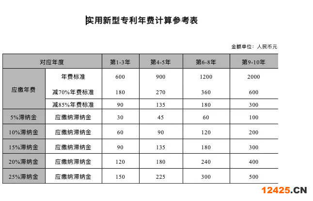 實用新型及外觀設計專利費用標準