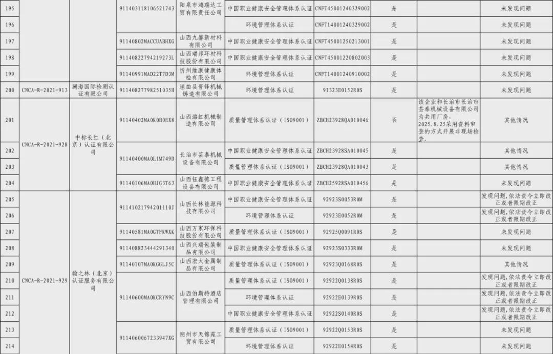 11月19日,山西省市場監管局對2025年認證活動“雙隨機、一公開”監督檢查結果進行了通報。此次共檢查299張自愿性認證證書,涉及52家認證機構,17張認證證書因已注銷(失效)或企業停產等原因未開展現場檢查,54張認證證書存在問題由市局對認證機構(或獲證組織)責令改正或限期改正,30張認證證書存在問題待后續調查處理。