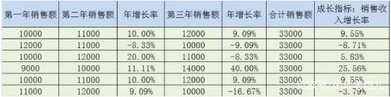 但從公式上看:主要看三年的數據,不能光靠一年,三年的總銷售收入相同的情況下,如果每年的銷售收入分攤不一樣,則數據完全不一樣: